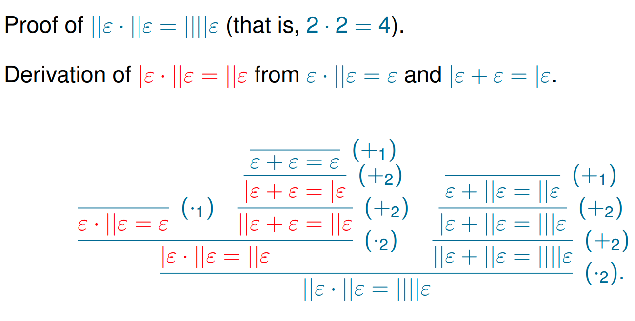 The following inference system contains 6 inference rules for deriving equalities between expressions containing natural numbers, addition () and multiplication ().